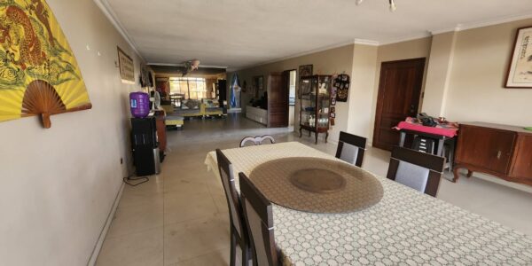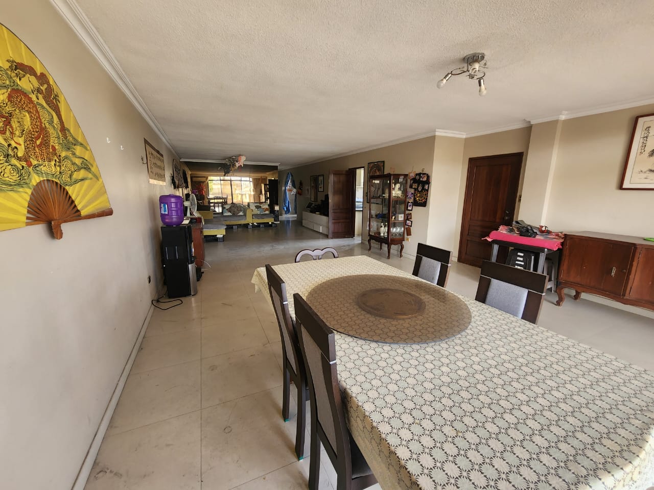 El departamento esta en un segundo piso sin ascensor. Tiene sala, comedor, cocina, baño de empleada, bodega pequeña, dormitorio master con closet y baño completo, dos dormitorios con baño cada uno, Tiene balcon. Tiene un amplio garage de 20 m2. El area del departamento es 188 m2. El edificio tiene cerramiento, portero electrico.