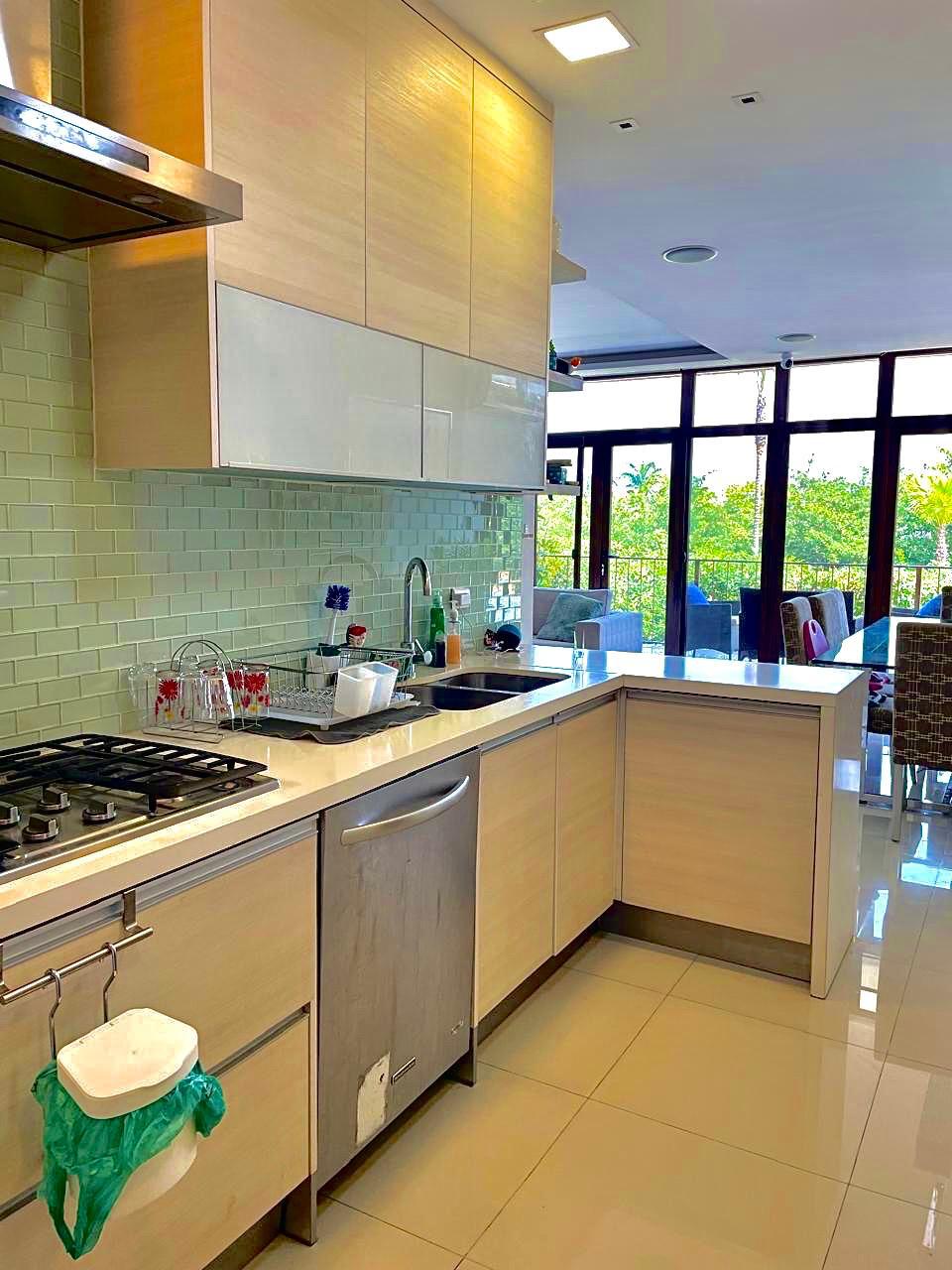 El departamento tiene sala, comedor, cocina, baño de visita, tres dormitorios con dos baños y closet, baño de empleada, lavanderia. La edad del departamento es 10 años, tiene tres garages. El edificio tiene piscina, jacuzzi, jardin. Las alicuotas son 149 del edificio y 193 de la urbanizacion.